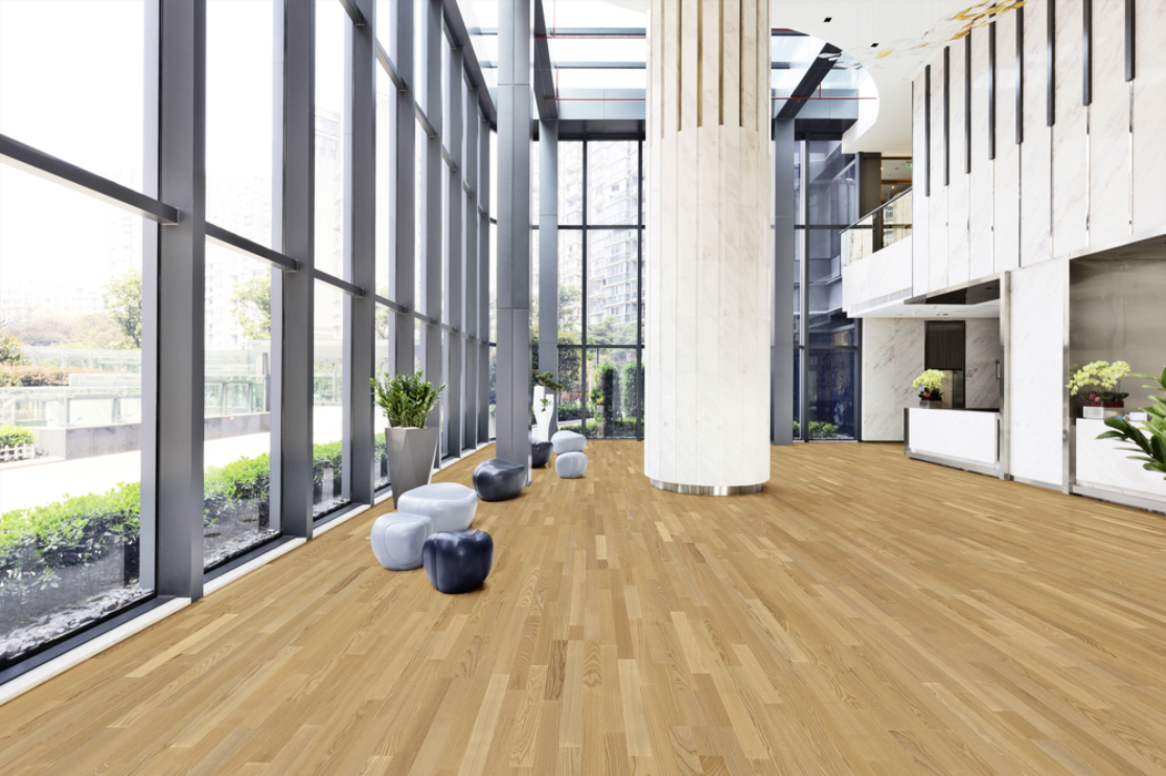 3-vrstvová masívna plávajúca podlaha 3-lamela Eurowood / Jaseň prírodný, lak