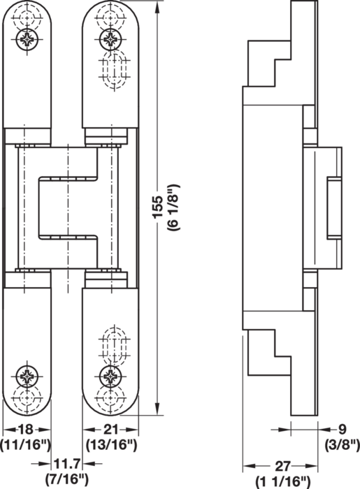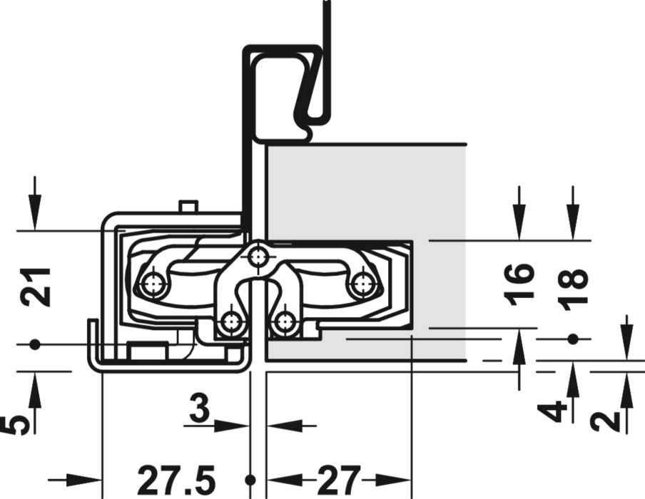 - max. hmotnosť dverí pre 2 závesy: 60 kg