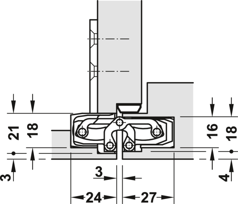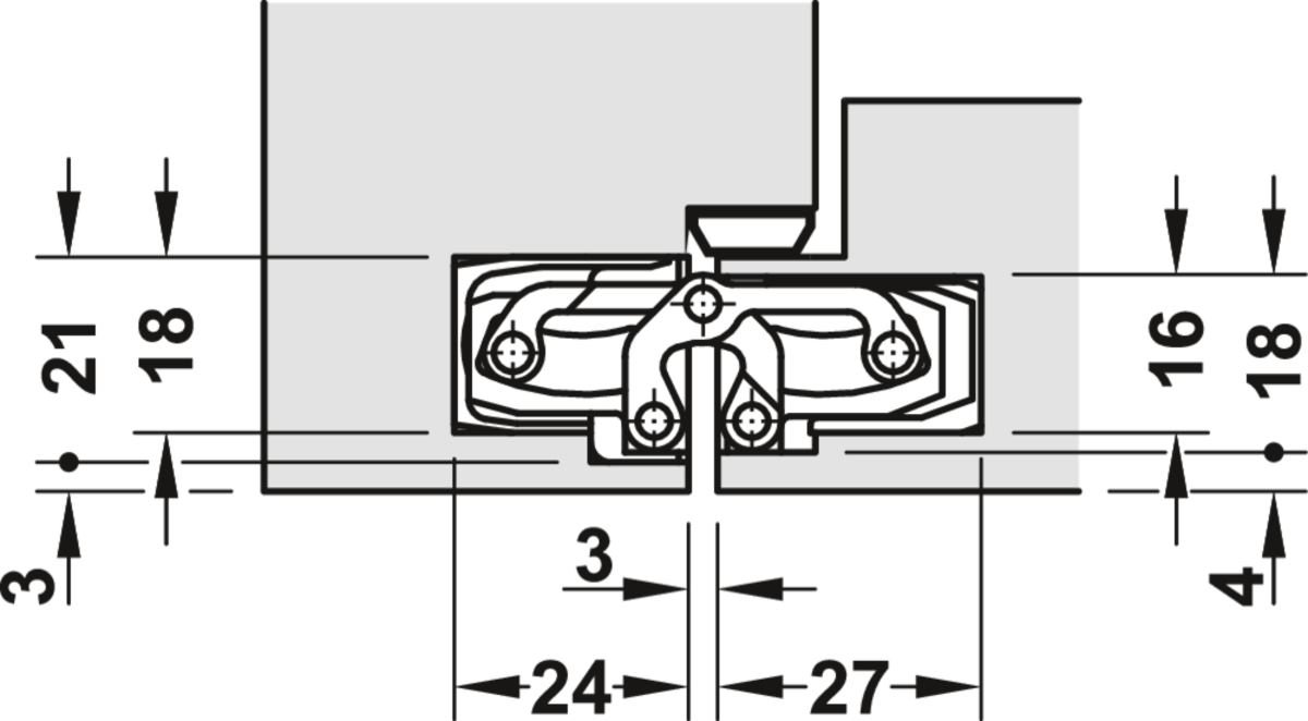 Häfele 924.18.921 / Skrytý dverný záves TECTUS TE 240 3D N, pre bezfalcové dvere do 60 kg, strieborná