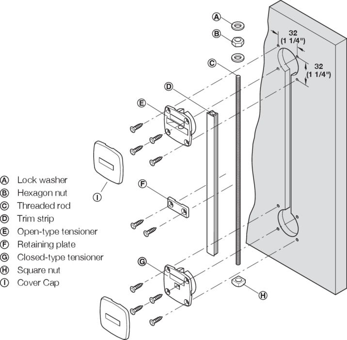 Pre každé dverné krídlo sa odporúčajú 2 vyrovnávacie kovanie. Nie je vhodné pre tvrdé drevo!