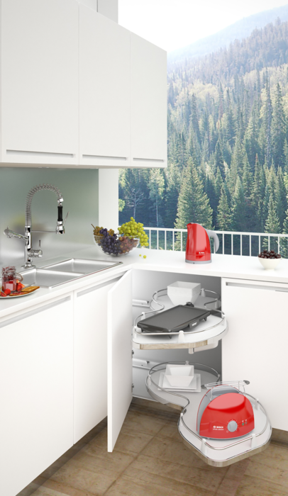 373i / Rohová výsuvná polica 450 mm, reverzibilná Ľ/P, biela, 2 ks