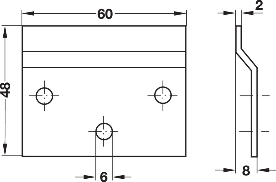 Häfele 290.08.900 / Závesné kovanie horných skriniek - podkladná doska, dĺžka 60 mm - zinkovane
