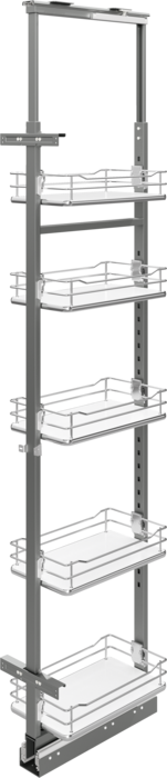 Häfele 546.80.715 / Čelná potravinová skriňa s 5 závesnými košmi s drevenou policou, pre montáž za čelo, pre šírku korpusu 300 mm
