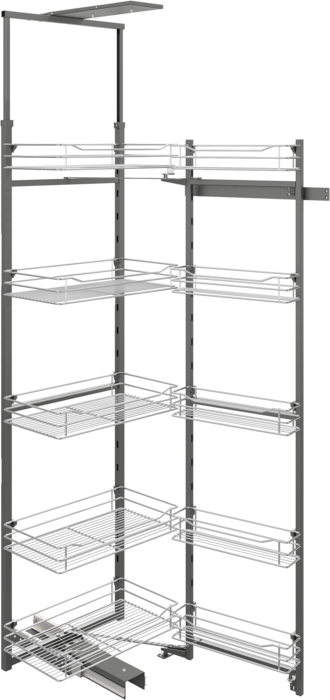 > výsuvný rám, polica na dvere a závesné koše: oceľ