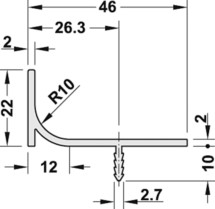 Häfele 126.37.123 / Zapustený úchytkový profil, zvislý, imitácia nerezu elox
