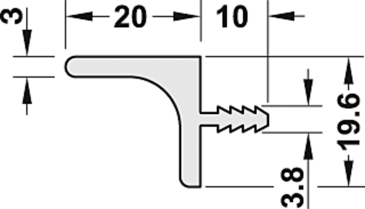 Häfele 126.53.702 / Zapustený úchytkový profil, RAL 9010 biela