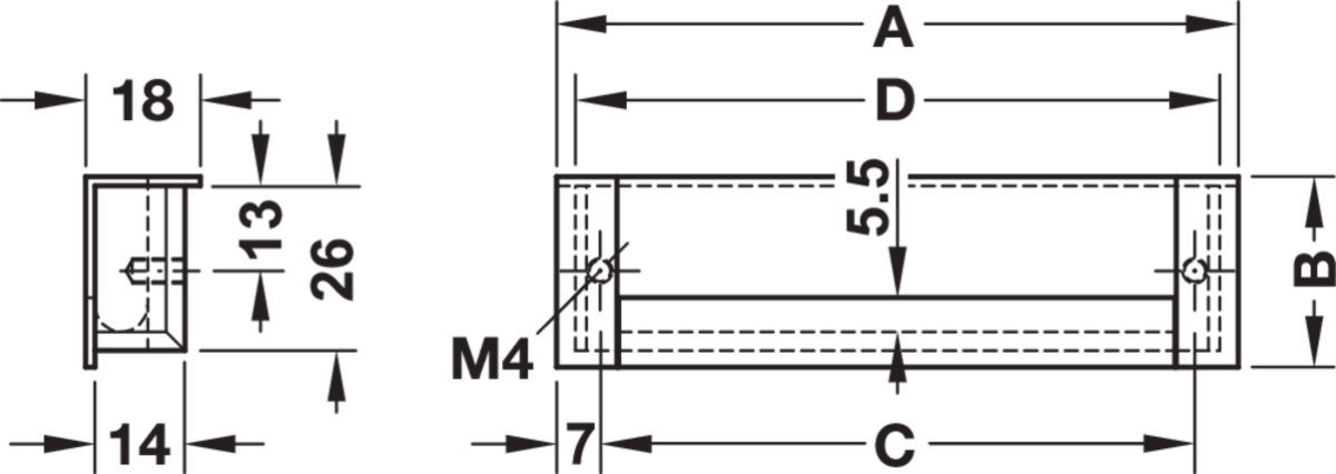 Häfele 151.99.901 / Nábytková mušľa do hrany, rozteč 96 cm, strieborná