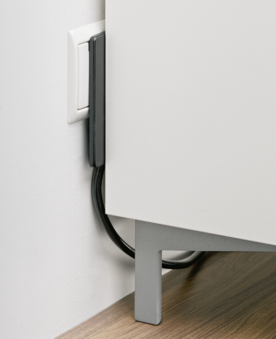 > tenký dizajn umožňuje použití zásuviek, ktoré sú za nábytkom, a napriek tomu ponechať nábytok posunutý takmer k stene