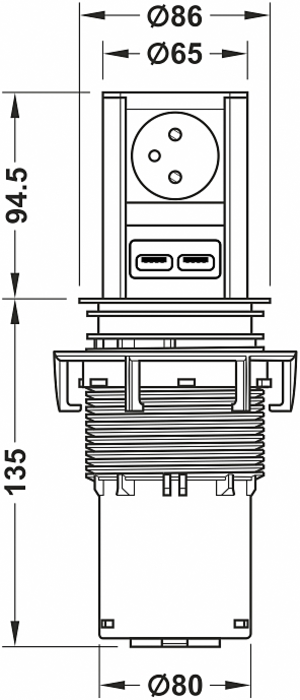 Häfele 822.92.92X / Elevator - 1 zásuvka UTE a 2 USB dobíjacie jednotky 5 V/3, 15 A, nerez