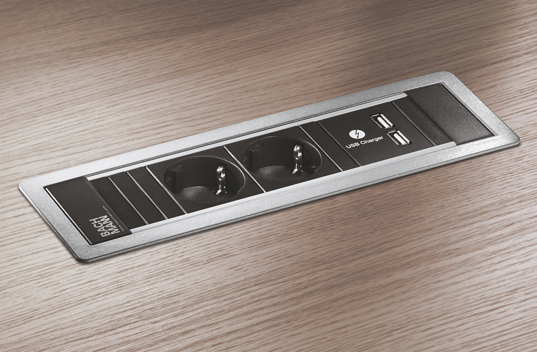 Häfele 833.91.14X / zásuvkový modul Power Frame, 2 zásuvky UTE a 2 USB (A/A 15W) dobíjacie jednotky