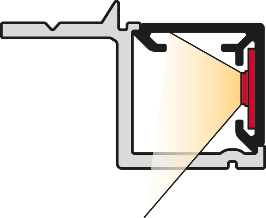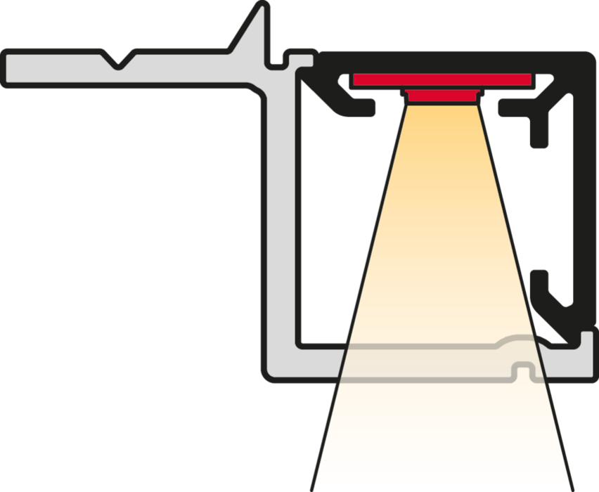 Osvetlenie zo strany je tiež možné, aby bolo možné inštalovať osvetľovacie LED pásky cez rohy bez tmavých zón a aby sa zamedzilo odrazu svetla od LED bodov.