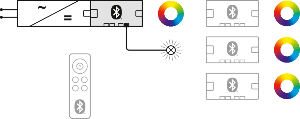 Upozornenie: Diaľkový ovládač Connect Mesh Eco 850.00.950 objednajte samostatne. Max. dĺžka kábla od Drivera k rozbočovaču 2 m.