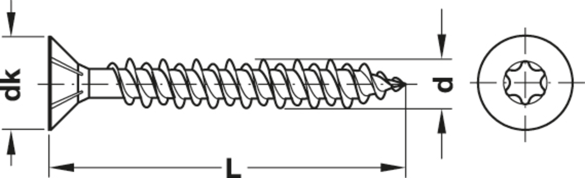 Häfele 017.91.013 / Skrutka do drevotriesky Hospa-Jet IS15 so závitom k hlave TORX, 3,0x15 mm, pozink, artikel obsahuje 50 ks