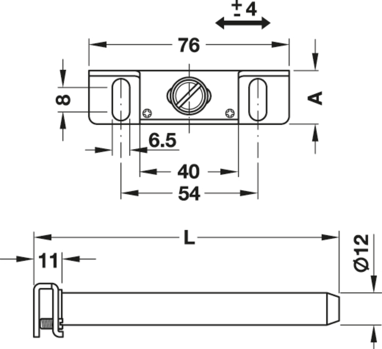 Häfele 283.33.931 / Skrytá podpierka polica s montážnou doskou a bočným nastavením, dĺžka 100 mm, rozmer A 15,5 mm, pozink