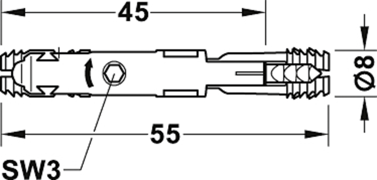 > montáž: pre bezplošné vkladanie do vrtu Ø 8 mm