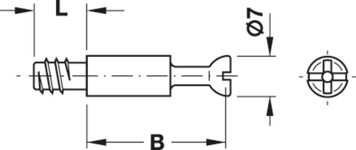 Häfele 262.28.026 / Spojovacie tiahlo Minifix S100, štandard, so špeciálnym závitom, pre otvor Ø 5 mm, s hlavou Ø 7 mm