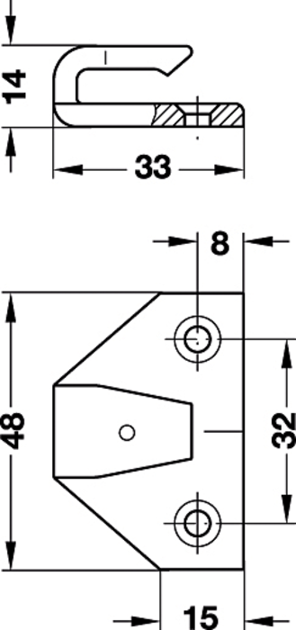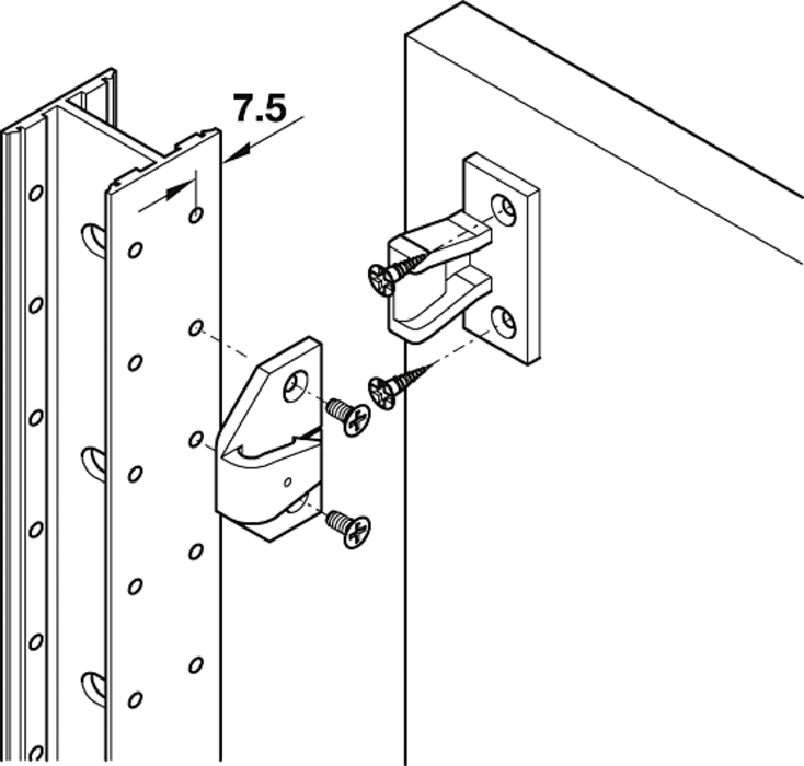 Häfele 262.50.390 / Nasúvací kovanie Keku, boky rámu ASR na naskrutkovanie na spodnú konštrukciu, so systémovou skrutkou