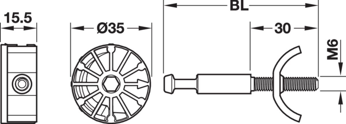 Häfele 262.87.042 / Spojovacie kovanie pracovných dosiek Maxifix 35 - dĺžka skrutky 154,5 mm