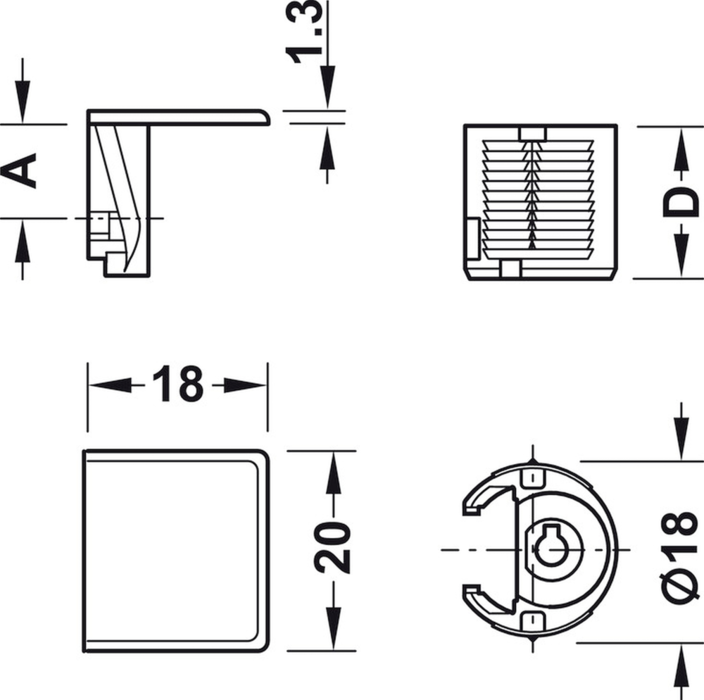 - montáž: podpera na priskrutkovanie alebo narazenie do vŕtaného otvoru Ø 3 alebo 5 mm