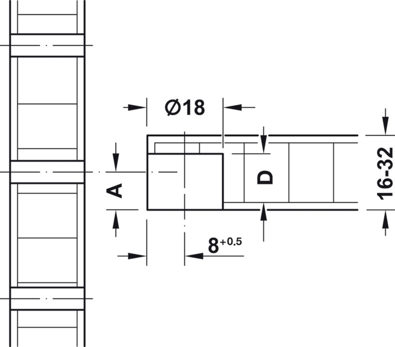 - priemer vŕtaného otvoru: 18 mm