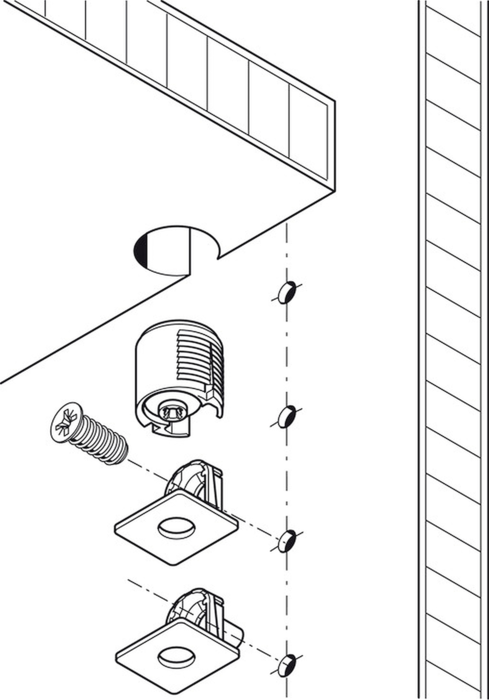 Häfele 263.73.535 / Spojovacie kovanie pre korpusy a police Tab 18, bez zaistenia, na naskrutkovanie, pre hrúbku dreva 16 mm, nikel