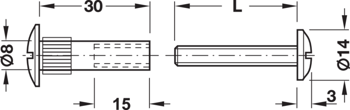 Häfele 267.05.704 / Spojovacia skrutka a púzdro pre otvor Ø 8 mm, dĺžka 30 mm - niklované