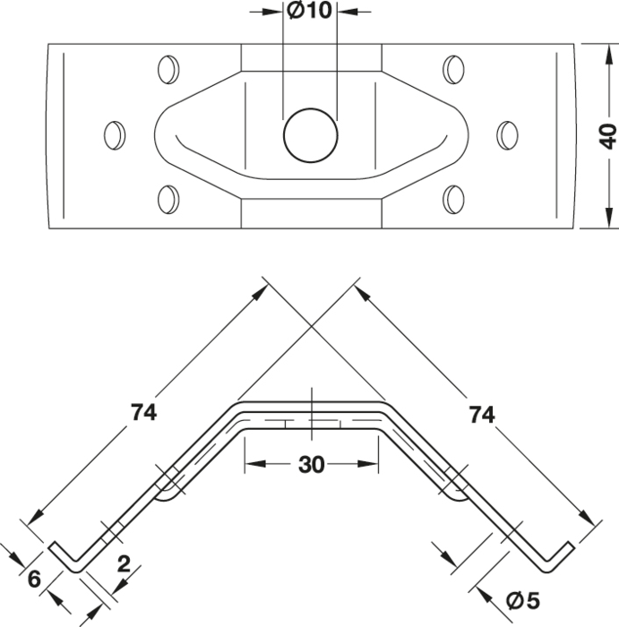 Häfele 641.00.901 / Rohové spojovací kovanie pre spojenie lubov so stolovou nohou, výška 40 mm