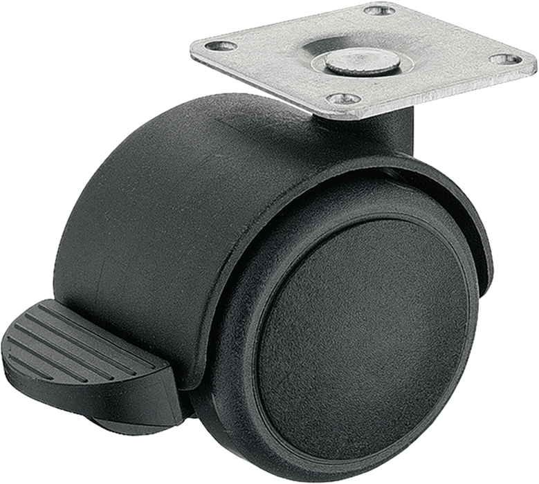 Häfele 660.06.350 / Dvojité nábytkové koliesko s brzdou, otočné, s krytom, pätka na priskrutkovanie, nosnosť cca 50 kg, priemer kolieska 50 mm