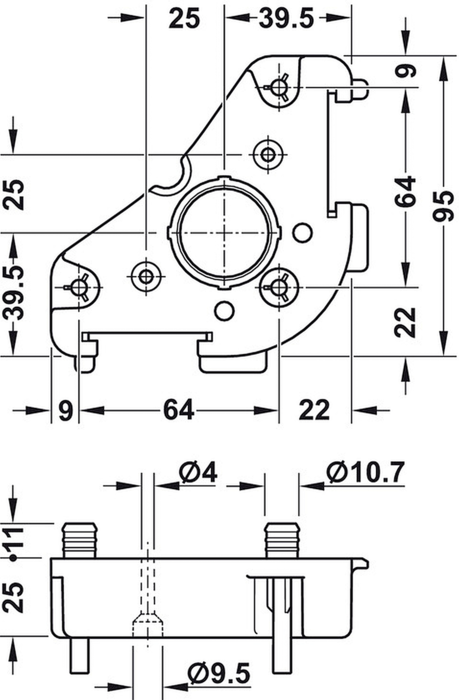 Häfele 637.38.340 / Plastová montážna podložka AXILO™ 78, trojhranná, na narazenie, čierna