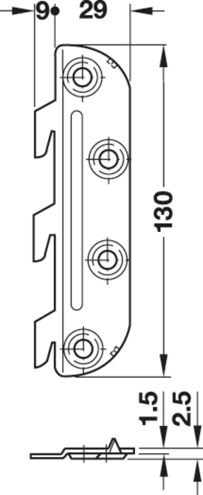 Häfele 271.03.531 / Posteľové spojovací kovanie s vyhnutým závesným dielom a protikusom pre použitie na pravej alebo ľavej strane, výška 130 mm - pozink