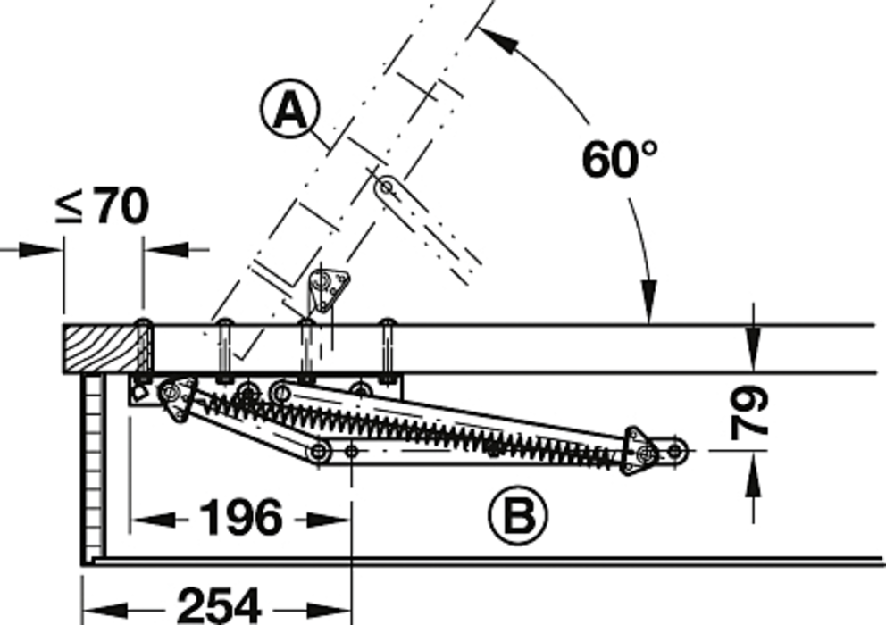 Häfele 274.50.915 / Pružinové posteľové kovanie Swing pre lehátka a postele s priečne odklápacím lôžkom, pozink