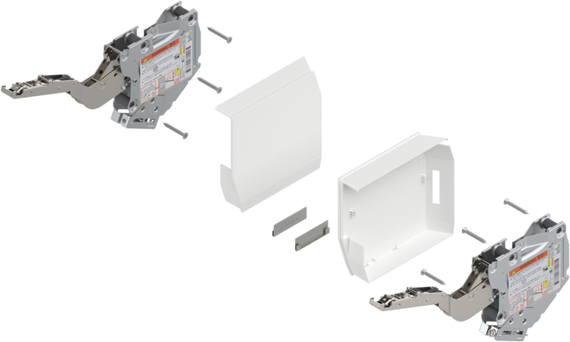 Blum 20K2C00T06 / AVENTOS HK-S výklop, zdvíhací mechanizmus - pár (vrátane krytiek), LF=400-1000 (u 2 kusov) pre TIP-ON, hodvábne biela/nerez pozdĺžne brúsená
