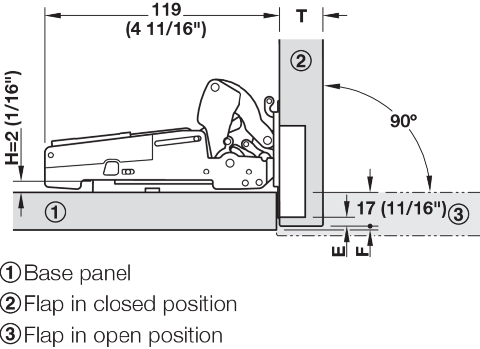 Häfele 365.13.701 / Výklop, model B, s automatickým zaistením, poniklované