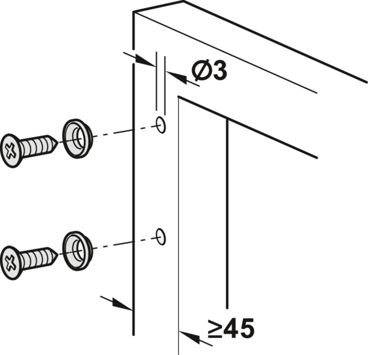 Häfele 372.27.600 / Free space upevňovacie skrutky pre čela s hliníkovým rámčekom, od šírky rámčeku 45 mm