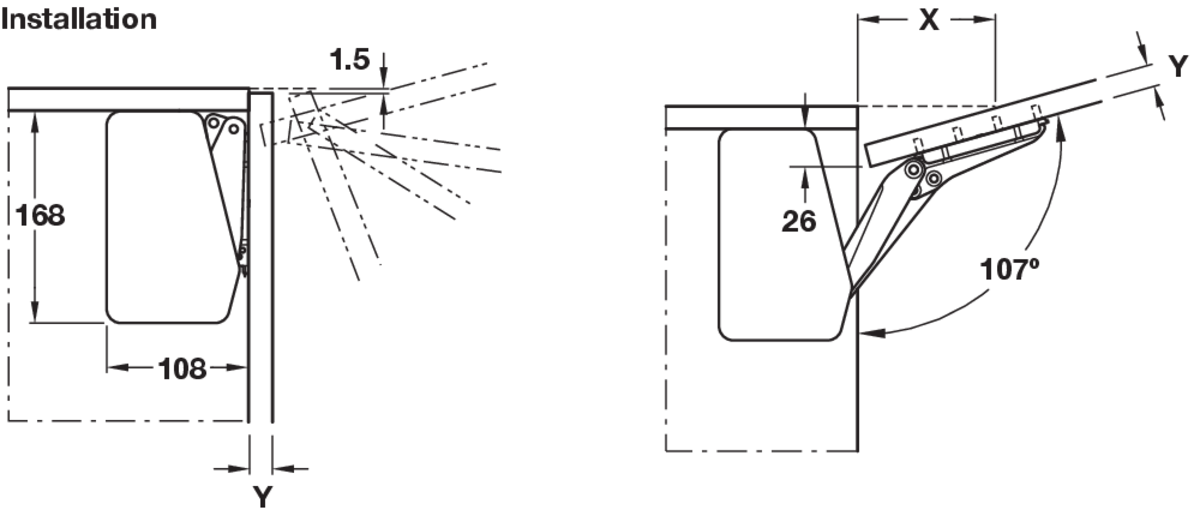 > použitie: pre výklopné dvierka s alebo bez úchytky (push-to-open)