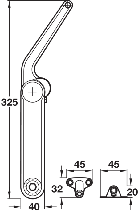 Häfele 373.69.402 / Výklopne kovanie Maxi - pre drevené klopny s hliníkovym rámikom šírky 20 mm, model B, odstup hrany 37 mm - niklované