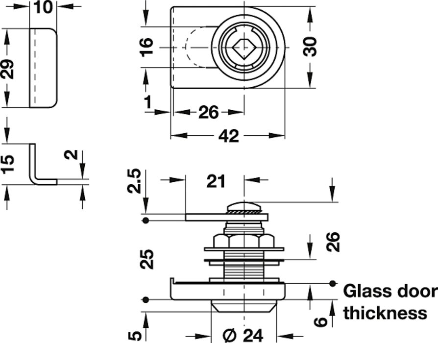 Häfele 233.42.710 / Jazýčkový zámok pre sklenené dvierka, smer zamykanie B, matne poniklované