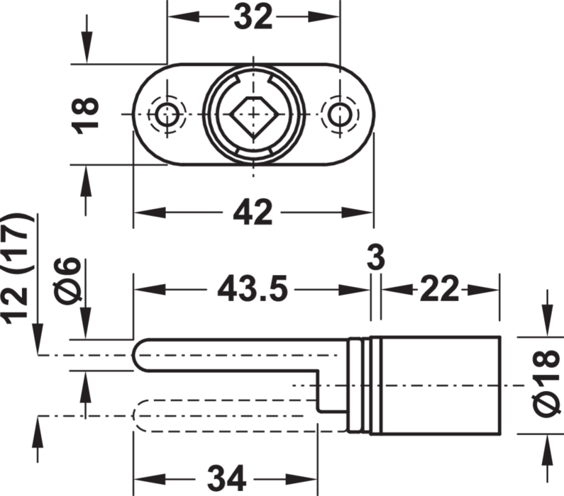Häfele 234.98.600 / Centrálny otočný zámok SYMO s obojstrannou upevňovací pätkou, zdvih 12 mm