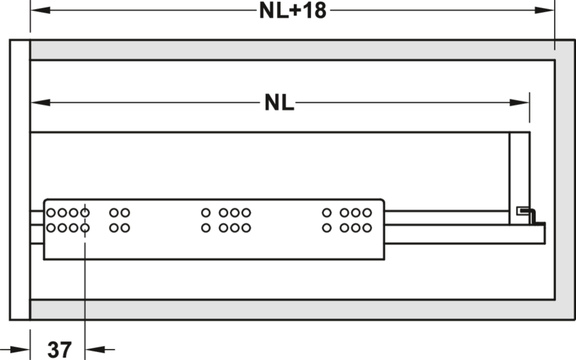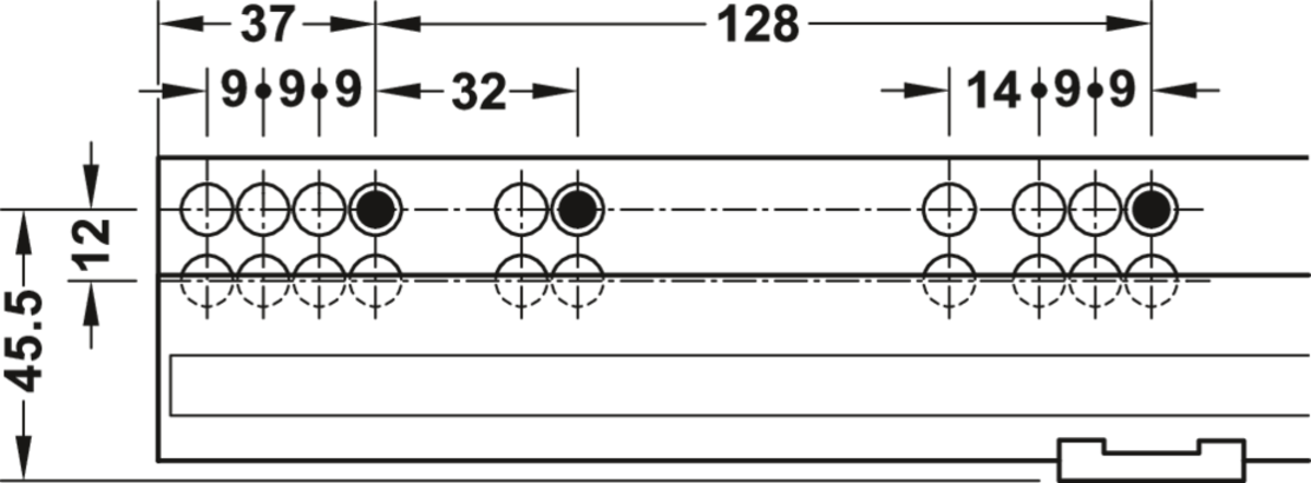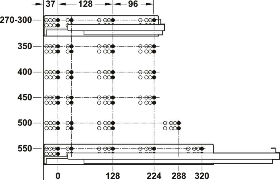 Häfele 433.03.674 / Matrix Runner UM A, Push-to-Open, plný výsuv, 450 mm, 30 kg