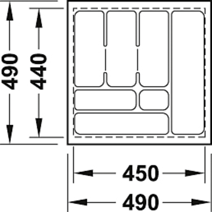 Häfele 556.57.326 / Zásobník na príbory / zarezanie na mieru, pre šírku korpusu 550 mm a hĺbku 500 mm, carbon