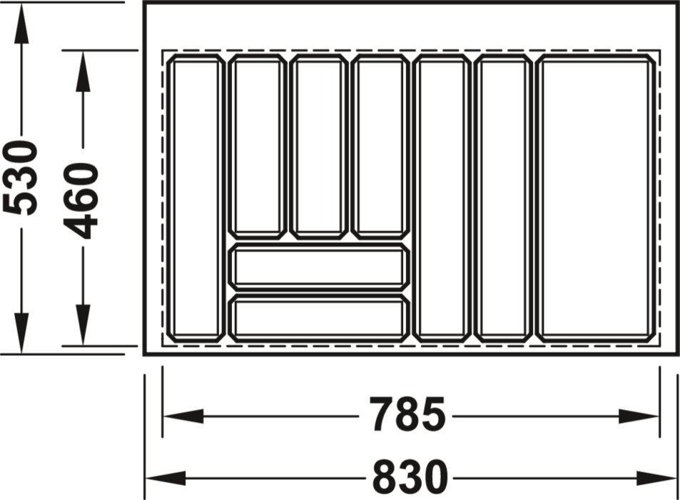 Häfele 556.60.718 / Vložka do zásuvky - univerzálna, výška 52 mm, pre šírku korpusu 900 mm, biela
