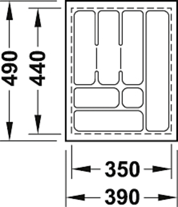 Häfele 556.62.624 / Zásobník na príbory / zarezanie na mieru, pre šírku korpusu 450 mm a hĺbku 500 mm, biela