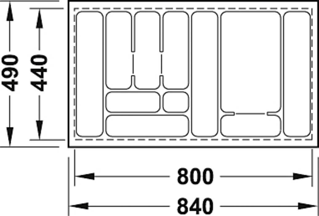 Häfele 556.62.630 / Zásobník na príbory / zarezanie na mieru, pre šírku korpusu 900 mm a hĺbku 500 mm, biela