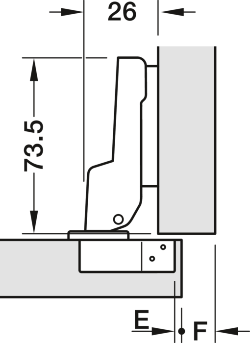 Häfele 311.04.251 / Nábytkový záves pre drevené dvere - Metalla 310 SM 110° polonaložený, s tlmením, na klip, vzor vŕtanie 45 / 9,5 mm