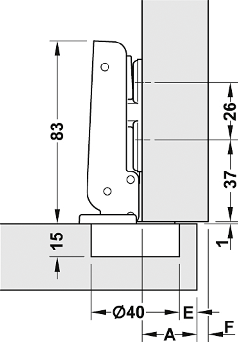 Häfele 327.22.510 / Naložený záves pre drevené dvere, so zatváraci mechanikou, 95°, do šírky dverí 900 mm
