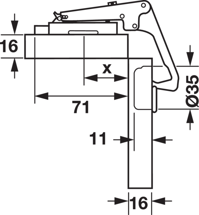 > montáž: dvere nasadiť na korpus nasúvancou technikou pomocou montážnych podložiek Duomatic A alebo rychlo montážnoju technikou pomocou montážnych podložiek Duomatic SM