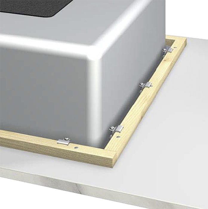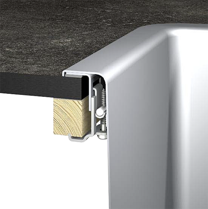 Upevnenie bežne dostupných drezov je všeobecne určené pre pracovné dosky s hrúbkou približne 38 mm. Upevňovacia sada umožňuje montáž drezov aj na tenké Pracovné dosky PerfectSense Topmatt s rovnou hranou a Kompaktné pracovné dosky.