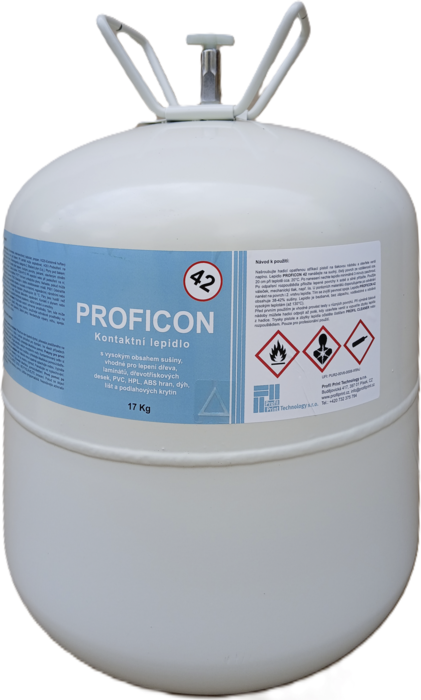 PROFICON 42 je veľmi kvalitné kontaktné lepidlo v tlakových nádobách. Obsahuje veľké percento sušiny (až 38-42%) a nízke množstvo rozpúšťadiel.