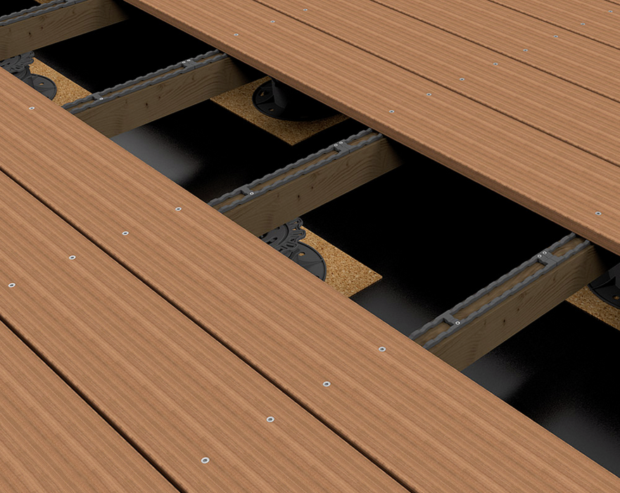 Nové terasové lišty sa pokladajú na nosníky tak, aby os terasových líšt bola v osi nosníkov. Terasové lišty sa pripevňujú k nosníkom skrutkami RAPI-TEC terasu alebo RAPI-TEC terasa PLUS 4,0x40, podľa druhu dreviny.