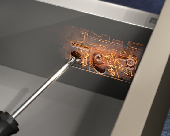Systém MERIVOBOX je navrhnutý tak, aby bol ľahko použiteľný a praktický. Vďaka jednoduchým a jasne označeným možnostiam nastavenia je montáž nábytku rýchla a bezproblémová.
